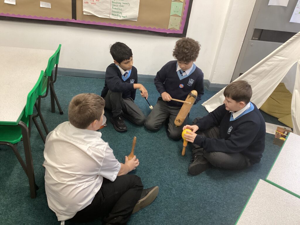 In music, Year 4 explored the idea of an ostinato, which is a short musical pattern that is repeated over and over again. Using rivers as their theme, the children thought carefully about how music can represent flowing water, movement, and changes in speed. They experimented with a range of instruments and chose the ones they felt were most suitable for their river-inspired ostinatos. After practising and refining their patterns, the children confidently performed their ostinatos to the class, showing excellent teamwork, creativity, and listening skills.